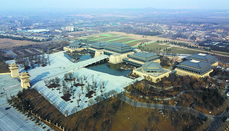 A bird's-eye view of the newly opened Shaanxi History Museum's Qin-Han Civilization Museum in Xixian New Area, Shaanxi province.[PHOTO BY ZOU HONG/CHINA DAILY]
