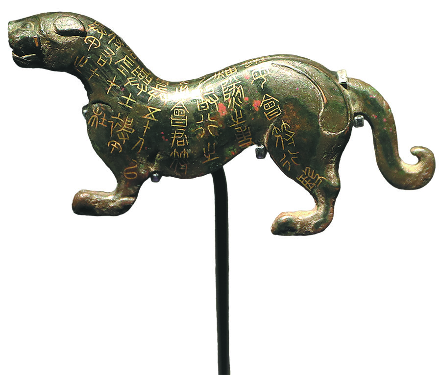 A bronze tiger that was presented to summon soldiers in the Warring States Period (475-221 BC) is on exhibition.[PHOTO BY ZOU HONG/CHINA DAILY]