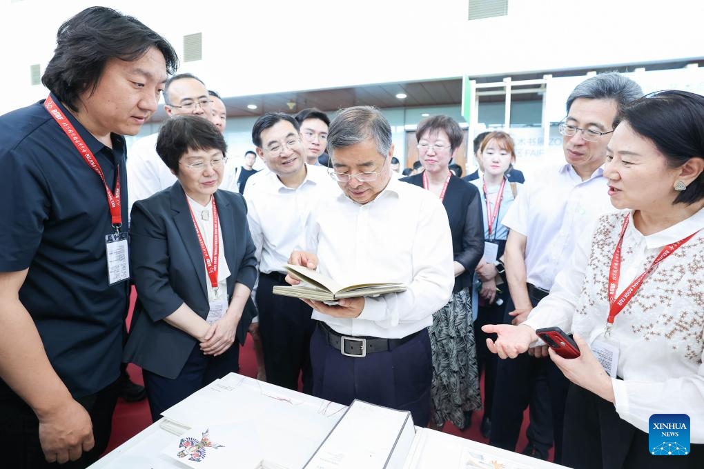 Li Shulei, a member of the Political Bureau of the Communist Party of China (CPC) Central Committee and head of the Publicity Department of the CPC Central Committee, visits and researches the 30th Beijing International Book Fair in Beijing, capital of China, June 19, 2024. The book fair commenced at the China National Convention Center in Beijing on Wednesday. (Xinhua/Liu Bin)