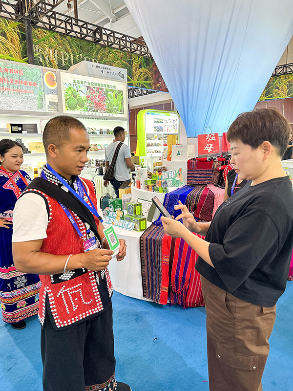 “Within just three hours of opening our exhibition booth at the expo, we sold 11 scarves and eight aprons. Within three days of the expo’s opening, we received orders worth 160,000 yuan (approximately $22,170),” said Chen, who serves as the first secretary of Banmu village in Ximeng Wa Autonomous County, Pu’er city.
