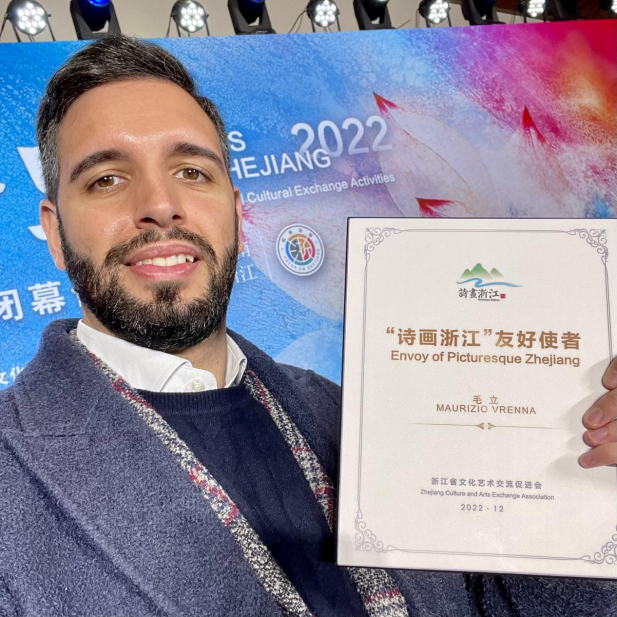 Maurizio Vrenna is awarded "Envoy of Picturesque Zhejiang" by the Zhejiang Culture and Arts Exchange Association, December 2022. (Photo provided by Maurizio Vrenna)