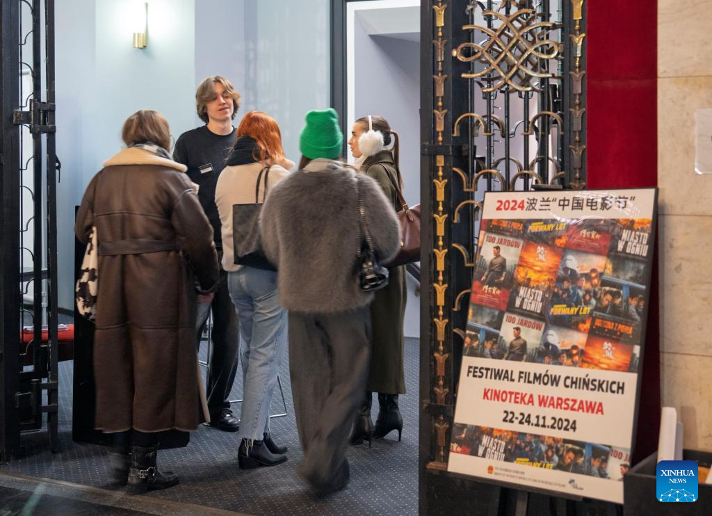 People arrive to attend the 2024 Poland "Chinese Film Festival" in Warsaw, Poland, on Nov. 22, 2024. The 2024 Poland "Chinese Film Festival" officially commenced on Friday, with over 300 Polish guests attending the opening ceremony and watching the highly anticipated film "Creation of the Gods I: Kingdom of Storms". (Xinhua/Xia Yuanyi)