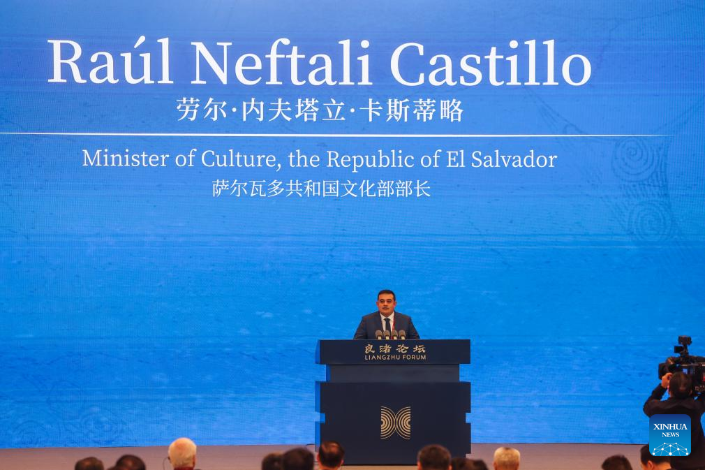 Raul Neftali Castillo, Minister of Culture of the Republic of El Salvador, speaks at the opening ceremony of the Liangzhu Forum in Hangzhou, east China's Zhejiang Province, Nov. 25, 2024. (Xinhua/Xu Yu)