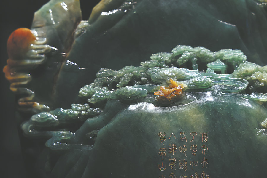 This miniature Taishan Mountain is among the four jadeite ornaments housed at the museum that are dubbed "national treasures". Produced in the 1980s, they took more than 40 Beijing-based jade artisans eight years to complete, according to museum guide Yang Yuwei.