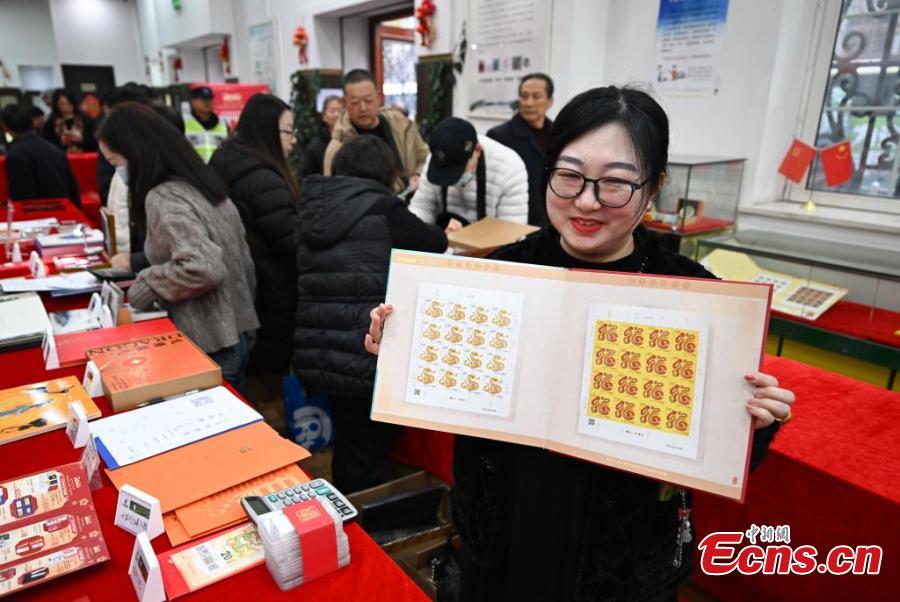 China Post on Sunday unveiled a set of two special stamps to celebrate the upcoming Chinese zodiac Year of the Snake. Inspired by Dunhuang murals and traditional customs, the stamps, integrating the image of the snake with auspicious meanings, will be released for sale on January 5, 2025.