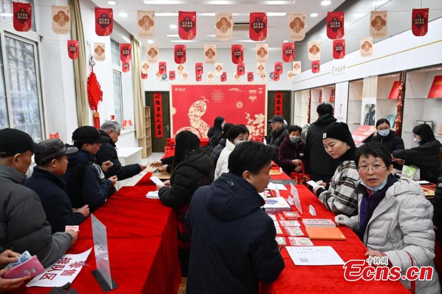 Stamp collectors wait to buy the special stamps marking the Chinese zodiac Year of the Snake at a post office in Hangzhou, east China's Zhejiang Province, Jan. 5, 2024. (China News Service/Wang Gang)