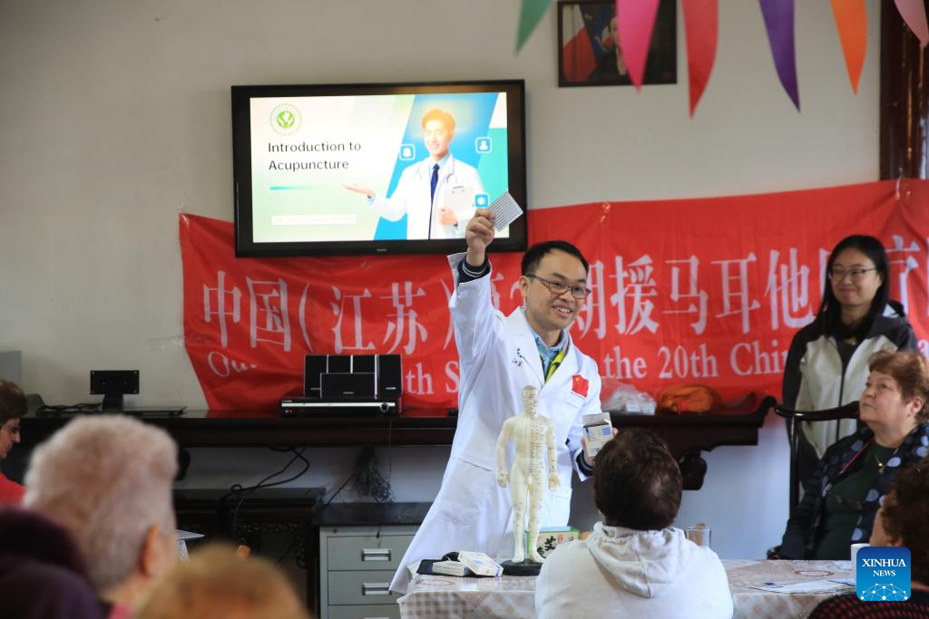The 20th Chinese medical team for Malta from the Mediterranean Regional Centre for Traditional Chinese Medicine (MRCTCM) provided free clinical services to elderly residents on Wednesday at the Chinese Garden of Serenity in Santa Lucija, southern Malta.
