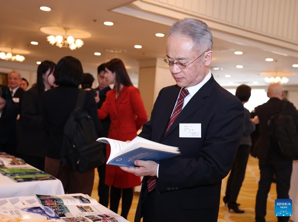 A delegate reads a report titled "Promoting the Development and Progress of Human Civilization through Exchange and Mutual Learning" at the ongoing dialogue on boosting cultural exchange between media organizations and think tanks of China and Japan in Tokyo, Japan, Feb. 18, 2025. The National High-Level Think Tank of the Xinhua News Agency on Tuesday issued a report in Tokyo, capital of Japan, titled "Promoting the Development and Progress of Human Civilization through Exchange and Mutual Learning."