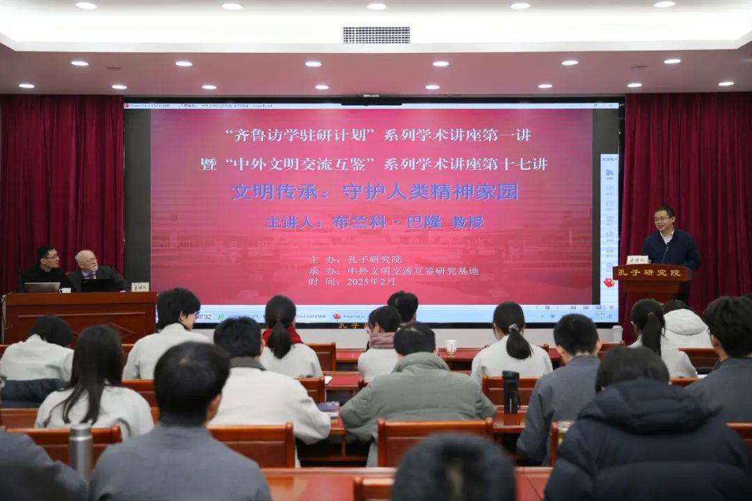 On February 17, the first lecture of the "Qilu VisitingResearch Program" series and the seventeenth lecture of the "Cultural Exchange and Mutual Learning between China and Foreign Countries" series washeld at the Academic Lecture Hall of ChinaConfucius Research Institute.Branko Balon, chairman of the Croatia-China Friendship Association and professor of Computer Science at ALGEBRA University in Zagreb, Croatia,delivered the lecture with the title "The Inheritance of Civilization: Guarding the Spiritual Home of Mankind".