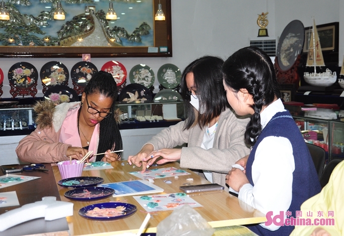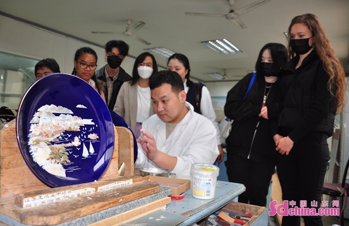 4月28日、ロシア、韓國、タイ、インドネシア、赤道ギニアなどからの留學生は「好客山東 好品山東 I love you」外國留學生體験活動のチームとして、青島貝彫蕓術館を訪れ、手作りの魅力を感じた。