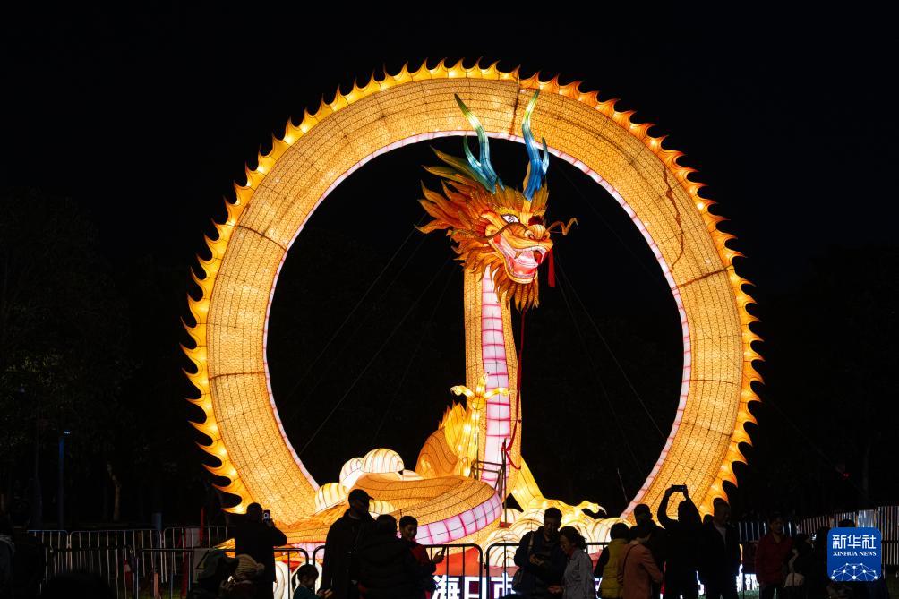 河南省洛陽市の王城公園で撮影された龍の飾り燈ろう。新華社記者?朱祥撮影