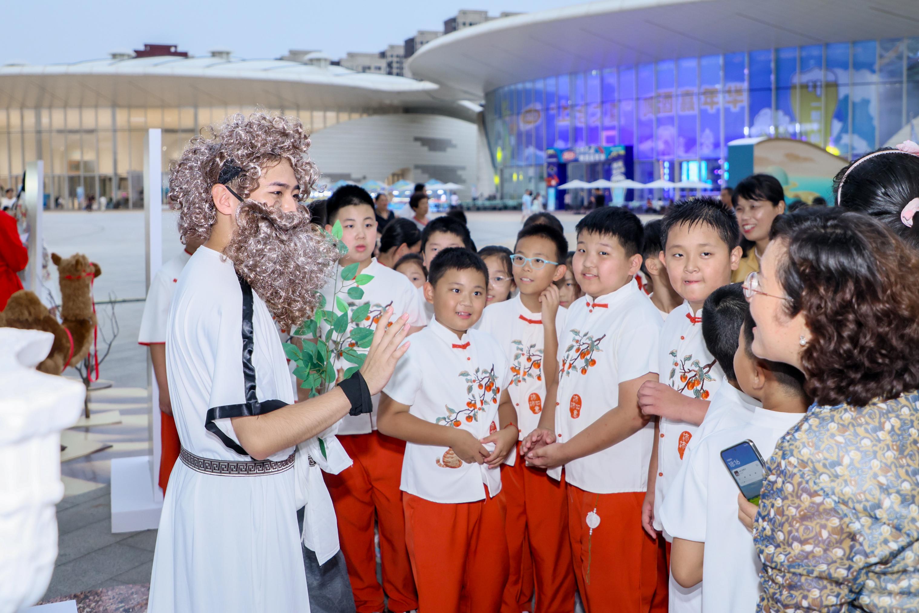 走出主會場,《中西先賢cosplay》展區成了熱門打卡點。深色長袍的“孔子”、灰白胡須的“蘇格拉底”、手持節杖的“張騫”、頭戴三山帽的“鄭和”……歷史書里的“頂流”們集體“到場”,引得大家紛紛駐足。