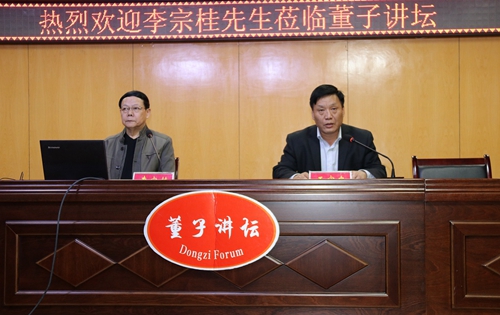 本次蒞臨董子講壇的是著名學者李宗桂教授。李宗桂先生是中山大學哲學系教授、博士生導師,中山大學文化研究所所長。廣東省政協委員、廣東省人民政府文史館館員。國務院學位委員會和國家教委聯合表彰的“在工作中做出突出貢獻的中國學位獲得者”。中央馬克思主義理論工程和國家社會科學基金重大課題《中國文化概論》課題組首席專家、教育部哲學社會科學重大課題攻關項目《中國優秀傳統文化的現代價值研究》首席專家。長期從事中國文化的研究,主要研究方向是中國古代哲學、中國傳統文化與現代化、當代中國文化、現代新儒學。主要著作有《中國文化概論》《文化批判與文化重構——中國文化出路探討》《傳統與現代之間——中國文化現代化的哲學省思》《傳統文化與人文精神》《中國傳統文化探討》《當代中國文化探討》《中華民族精神概論》等;主編《“中國文化與現代化”叢書》、《“大思想家與中國文化”叢書》、《“中華民族精神建設”叢書》;在海內外發表學術論文二百余篇。有的著作被譯為韓文和英文出版,入選“中華學術外譯項目”。獲得國家和省部級獎勵近20項。主持國家重大項目和教育部重大項目在內的文化研究課題近20項。先后在歐美日、澳大利亞、東南亞、韓國、港澳臺等國家和地區講學訪問或出席學術會議。是人民日報向海外介紹的中國學者之一。