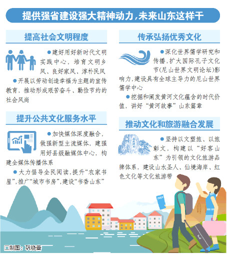 《中共山東省委關于制定山東省國民經濟和社會發展第十四個五年規劃和二〇三五年遠景目標的建議》(以下簡稱《建議》)將“文化強省建設實現重大突破”擺在突出位置,提出“十四五”時期文化強省建設實現突破、塑成優勢的目標任務:社會主義核心價值觀融入經濟社會發展各方面,優秀傳統文化影響力顯著提升,文物保護全面加強,公共文化服務體系更加健全,文化旅游業戰略性支柱產業地位充分彰顯,建成國際著名文化旅游目的地。