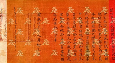 本次展覽中首次展出的《雍正十三年誥命卷》也吸引了眾多觀眾駐足。此卷包首為紅地彩織纏枝花織錦。三個誥命分別是雍正十三年(1735年)皇帝為驍騎正參領兼戶部云南司員外郎姚應鵬本室妻室、父母、祖父母所下誥命。此誥命是赤橙黃赭紫五彩織錦云紋地,用滿漢兩種文字墨書而成。