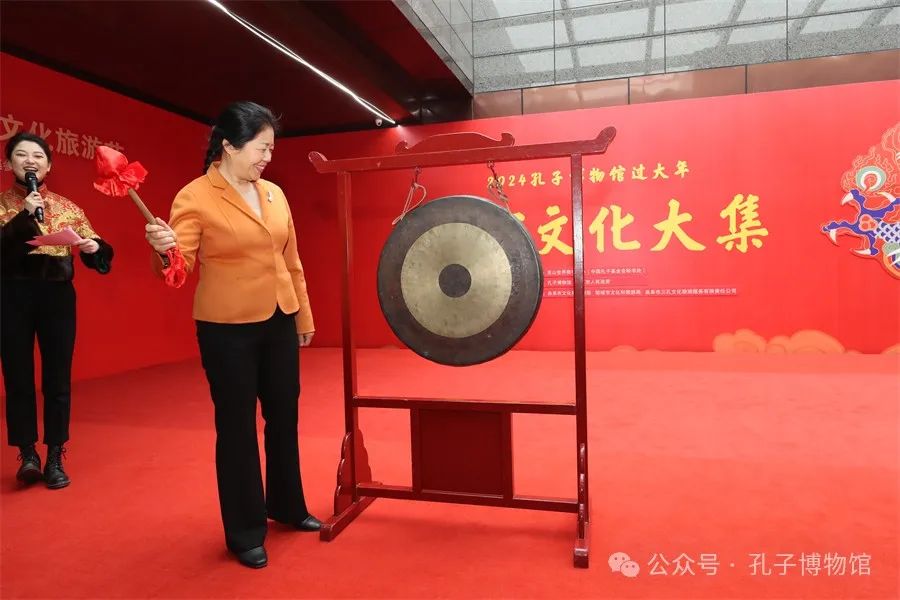 尼山世界儒學中心(中國孔子基金會秘書處)黨委書記、副主任,中國孔子基金會副理事長、秘書長國承彥同志為“2024孔子博物館過大年·黃河文化大集”鳴鑼開集。