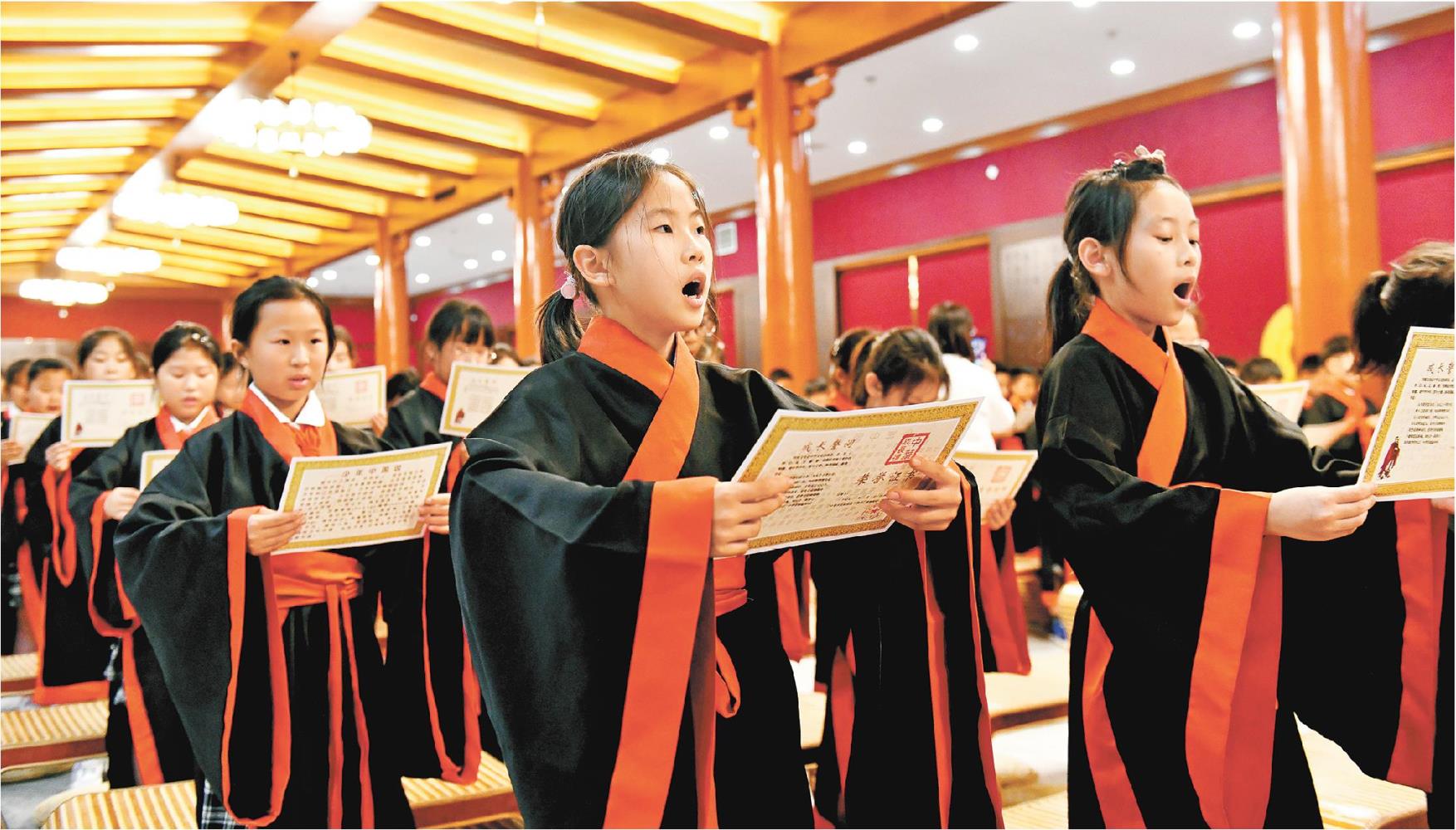 近年來,山東不斷推陳出新,把發展研學旅行作為推動文旅融合的亮點工作。圖為濟南一小學的學生在曲阜參加研學活動。(新華社發)