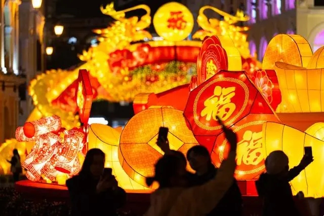 1月29日,澳門“龍騰飛舞慶豐年”燈飾點亮迎客。新華社發