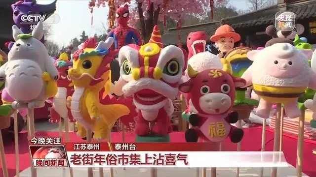 在江蘇泰州老街上的年俗集市,舞龍表演隊員們身著盛裝,精神抖擻。地方特色小吃、游戲互動和手工藝品攤位,讓游客滿足了味蕾,增加了體驗,買回了年禮。