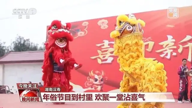 在湖南常德漢壽縣,村民不出村就能看到豐富的年俗節目,威風凜凜的“雄獅”在爆竹和鑼鼓的鏗鏘伴奏下,舞得風生水起。100張圓桌整齊排列,1000余位村民歡聚一堂,共同感受過年的喜氣。