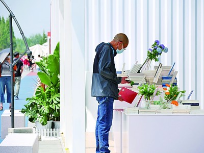 昆明市海埂大壩十里書香長廊上,讀者感受閱讀之美。本報記者徐鑫雨攝/光明圖片