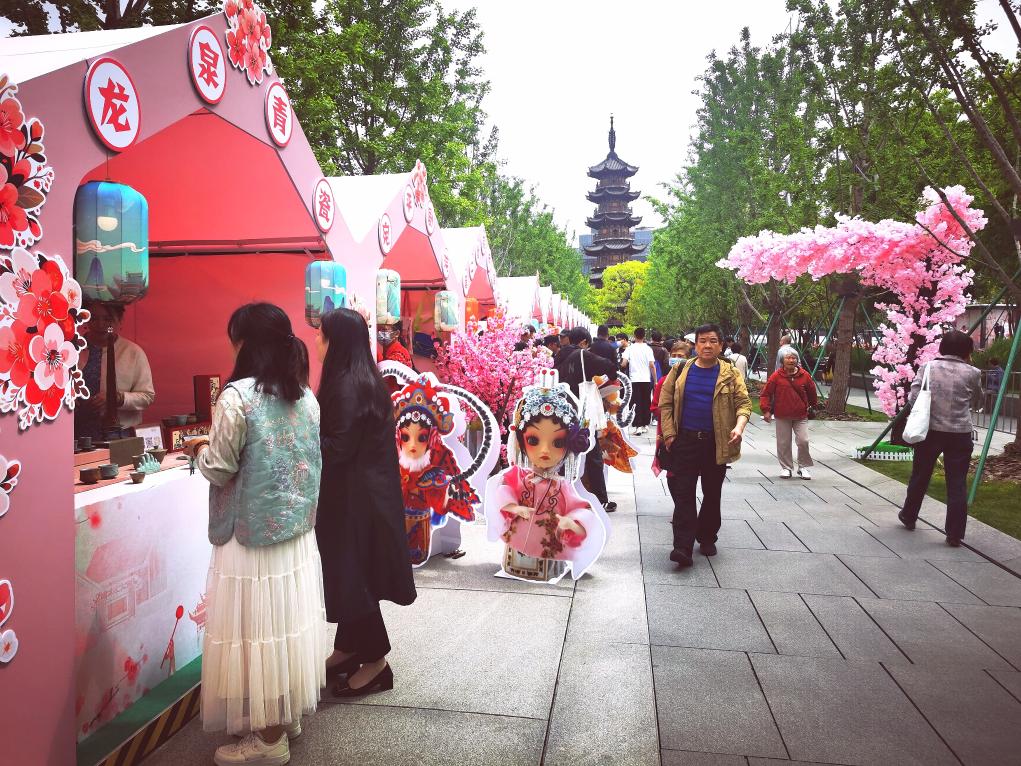 4月29日至5月5日舉辦的2024年上海龍華廟會自龍華廣場擴展至周邊商圈、街區、劇院、藝術中心等空間,還有線上的“數字廟會”。廟會市集現場,中外游客體驗上海及長三角省市非遺技藝,選購非遺衍生文創產品,欣賞滬劇、越劇、舞龍等表演,觀看安徽滁州等地文旅推介活動。