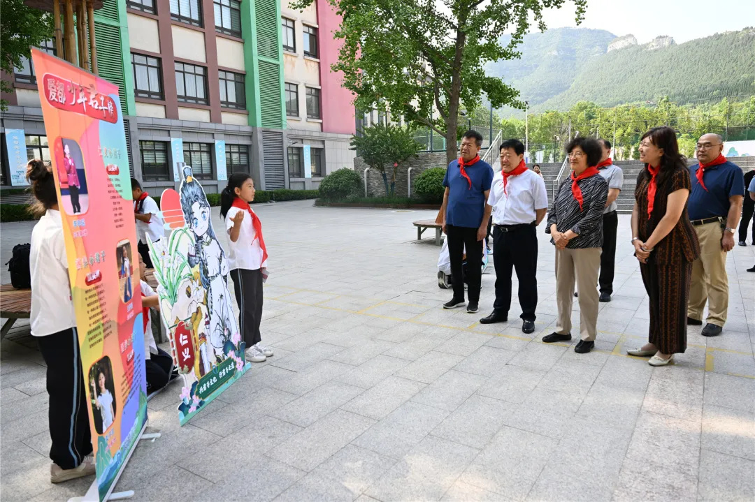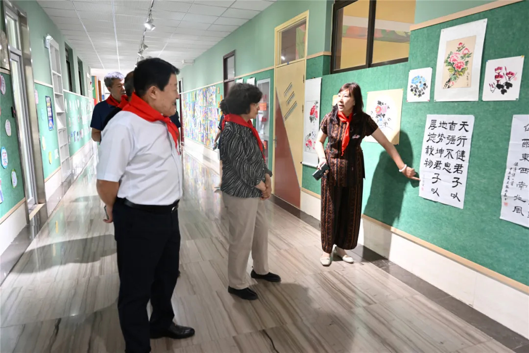 在呂華校長的陪同下,各位領導嘉賓參觀了學校的育人空間,并觀賞了以君子品格為主題的學生書畫作品展。