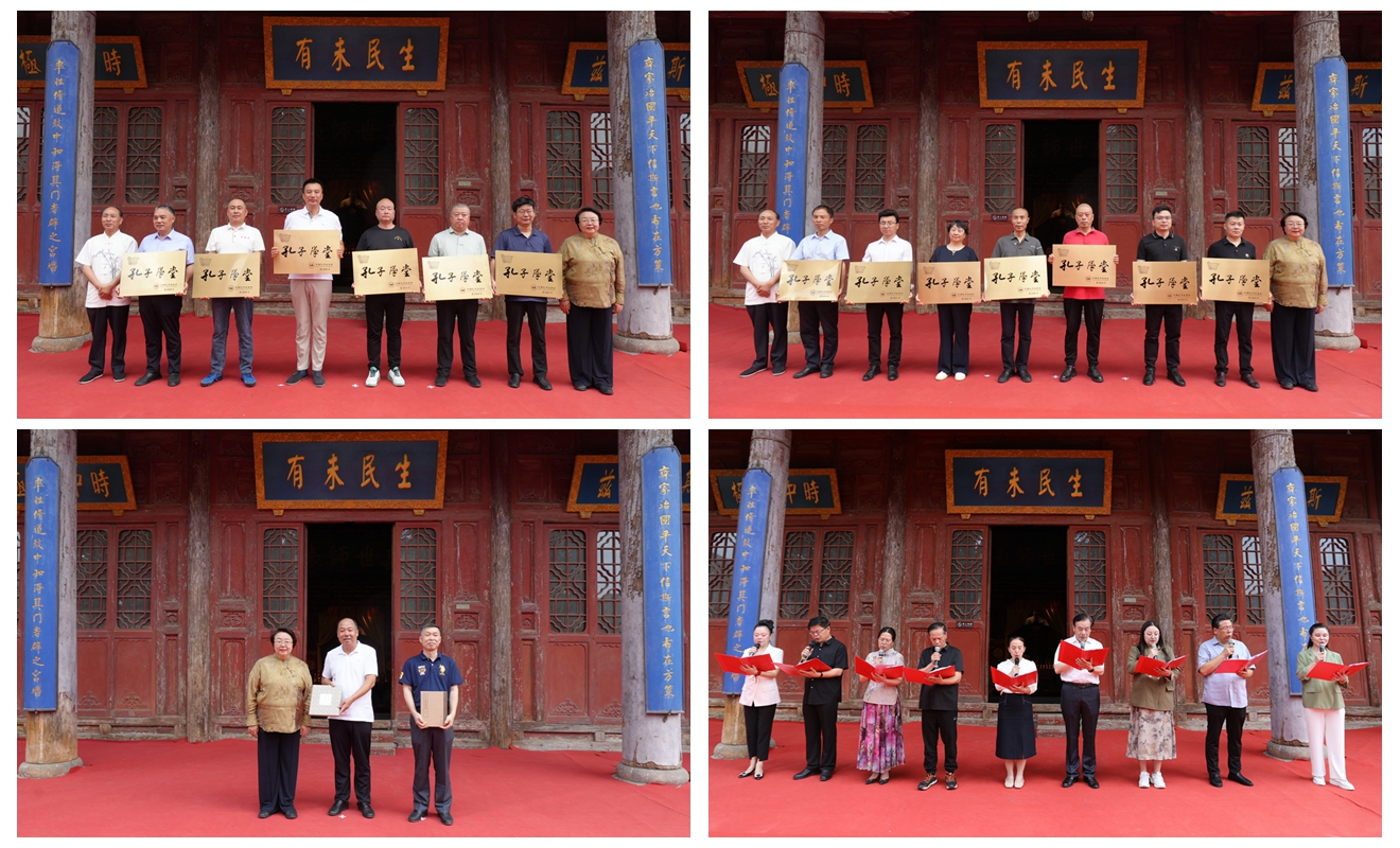 尼山世界儒學中心(中國孔子基金會秘書處)黨委委員、副秘書長,孔子學堂推進委員會主任周靜,孔子學堂推進委員會副主任、湖南省社會主義學院原副院長劉孝聽向2024年新設立的部分孔子學堂授牌。周靜代表中國孔子基金會孔子學堂推進委員會向韓城文廟捐贈《孔子圣跡圖》。