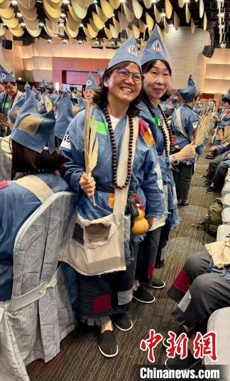 香港東井圓佛會會長暨美燕介紹,破帽、破扇、破鞋、舊衲衣是濟公形象的特點,他貌似瘋癲,性格豪放,實際上卻是一位學問淵博、慈悲濟世的高僧。為更好傳承濟公精神,東井圓佛會此前專程赴浙江天臺的濟公故居考證,得到故居負責人確認8項濟公服飾配件的標準規格。