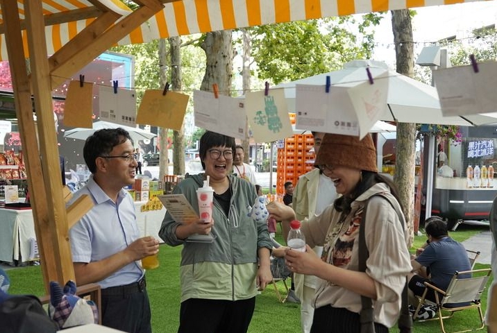 2024年6月17日,由商務部、北京市商務局、朝陽區八里莊街道等單位共同舉辦的“2024老字號嘉年華·心動老字號”系列消夏活動開幕。圖為人們在消夏集市上休閑購物。新華社記者 李欣 攝