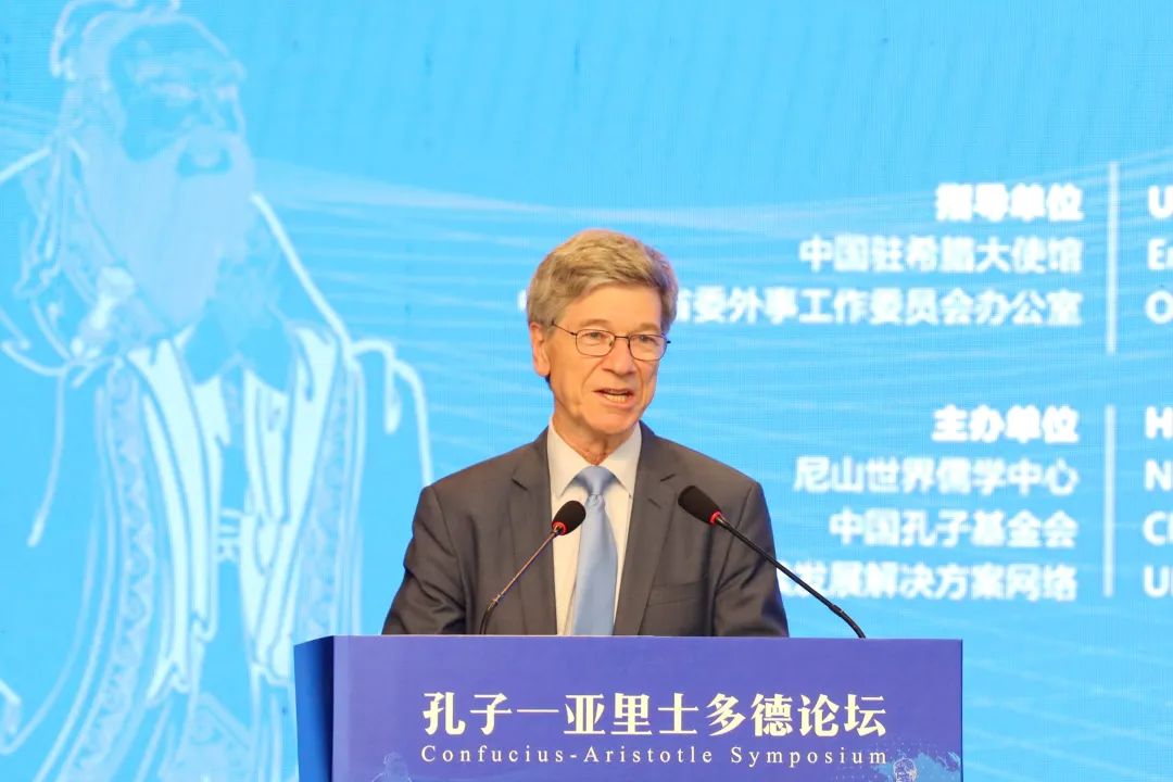于曉明代表中國孔子基金會向杰弗里·薩克斯主席對本次論壇付出的辛勤勞動表示感謝,對大家的到來表示歡迎,并介紹了中國孔子基金會在促進多元文化交流方面所開展的創新工作及取得的顯著成就。他指出,2023年7月,在希臘雅典,中國孔子基金會與聯合國可持續發展解決方案網絡、雅典科學院、亞里士多德大學共同舉辦了孔子—亞里士多德論壇,取得圓滿成功。今年在先哲孔子的故鄉舉辦,依然是高朋滿座、智者云集。正如習近平主席所指出的,中希兩大文明在亞歐大陸兩端交相輝映,為人類文明演進作出了奠基性的重大貢獻。期待本次論壇通過深入挖掘古老文明的深邃智慧,積極探索多元文明的相融途徑,為人類和諧相處、有序發展商討對策方案,共同推動構建相互尊重、公平正義、合作共贏的新型國際生態。