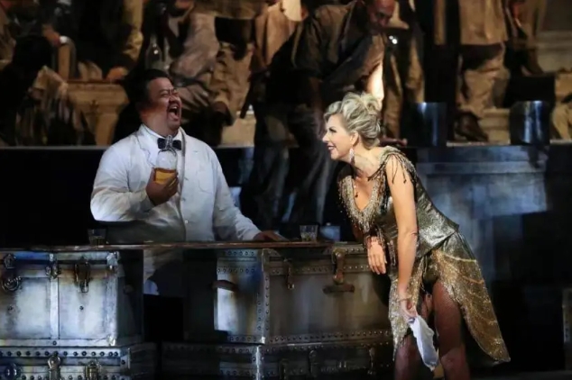 頗有年代感的大皮箱擺了滿地,臺球桌橫陳潦草,酒杯滿天亂飛,酒館老板、礦工、盜匪粉墨登場,一派粗糲的莽荒氣質撲面而來,如同一部酣暢淋漓的西部大片。7月21日,國家大劇院制作的普契尼歌劇《西部女郎》正在緊張彩排,7月23日至27日,著名指揮家卡羅·利茲將執棒國家大劇院管弦樂團,攜手中、美、意三國藝術家組成的創演陣容,把這部描寫加利福尼亞淘金熱的歌劇帶上2024國家大劇院歌劇節的舞臺。