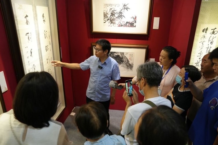 藝術博覽會設有名人名家展區、書畫藝術展區、文創藝術展區、民間藏品展區、非遺文化展區等七大展區,陳列來自中國美術家協會、書法家協會、西泠印社以及知名當代攝影藝術家的作品2000余件。參觀藝術展覽、購買文創產品、體驗非遺文化……藝博會現場觀眾比肩接踵,沉浸在這場文化盛宴之中。開幕首日,觀展人數突破2萬人次。