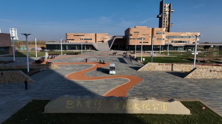 包頭黃河國家文化公園2023年建成開放,占地面積52842平方米,包含文化廣場、游客服務中心、博物館、觀景塔四部分。文化廣場通過地面鋪裝的肌理結合,打造“幾字彎”特色廣場空間,地面上這段彎曲延伸的道路,擬表達黃河包頭段悠久的歷史文化。