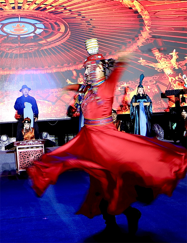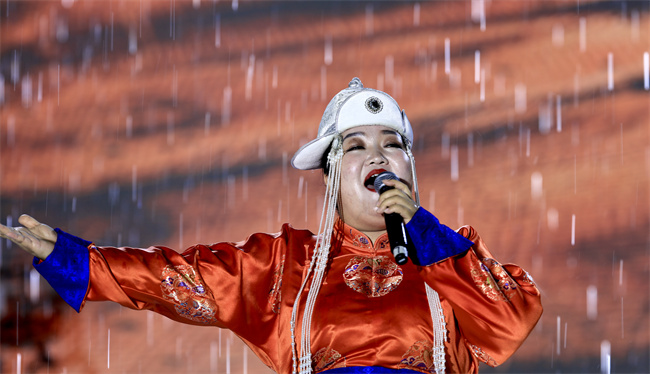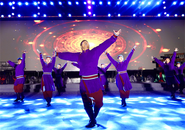 杭錦旗烏蘭牧騎表演歌舞樂《草原的祝?!?。