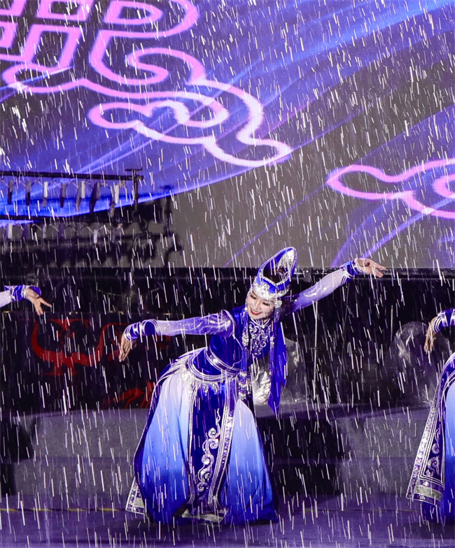 值得一提的是在孔子博物館六藝廣場進行的首場演出中突降大雨,演出如期而至,在雨中杭錦旗烏蘭牧騎與孔子博物館簫韶樂團同臺獻藝,綻放激情與魅力,為觀眾奉獻上了一場穿越古今、民族融合的文化盛宴。(圖文/侯新建)