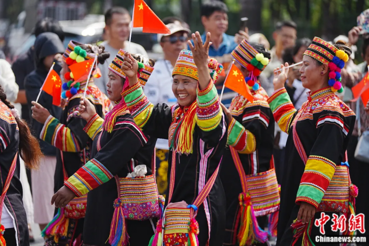 云南省臨滄市滄源佤族自治縣舉行民族民間傳統文化藝術游演,展示當地傳統文化和民族風情。圖為拉祜族方陣展民族風情。劉冉陽 攝