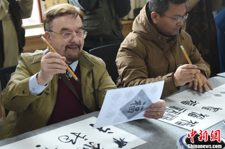 外國人在山東煙臺學寫“?!弊帧V袊幕蔀榱私夂驼J識中國的窗口。曲正揚 攝