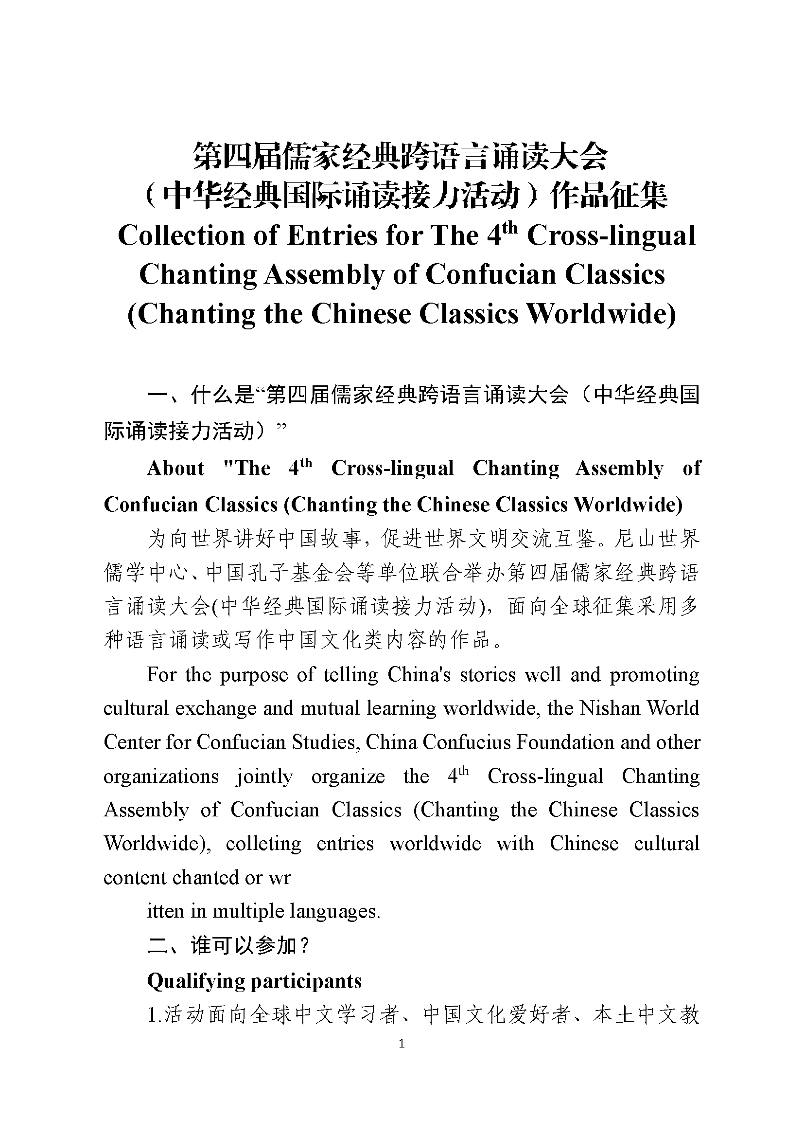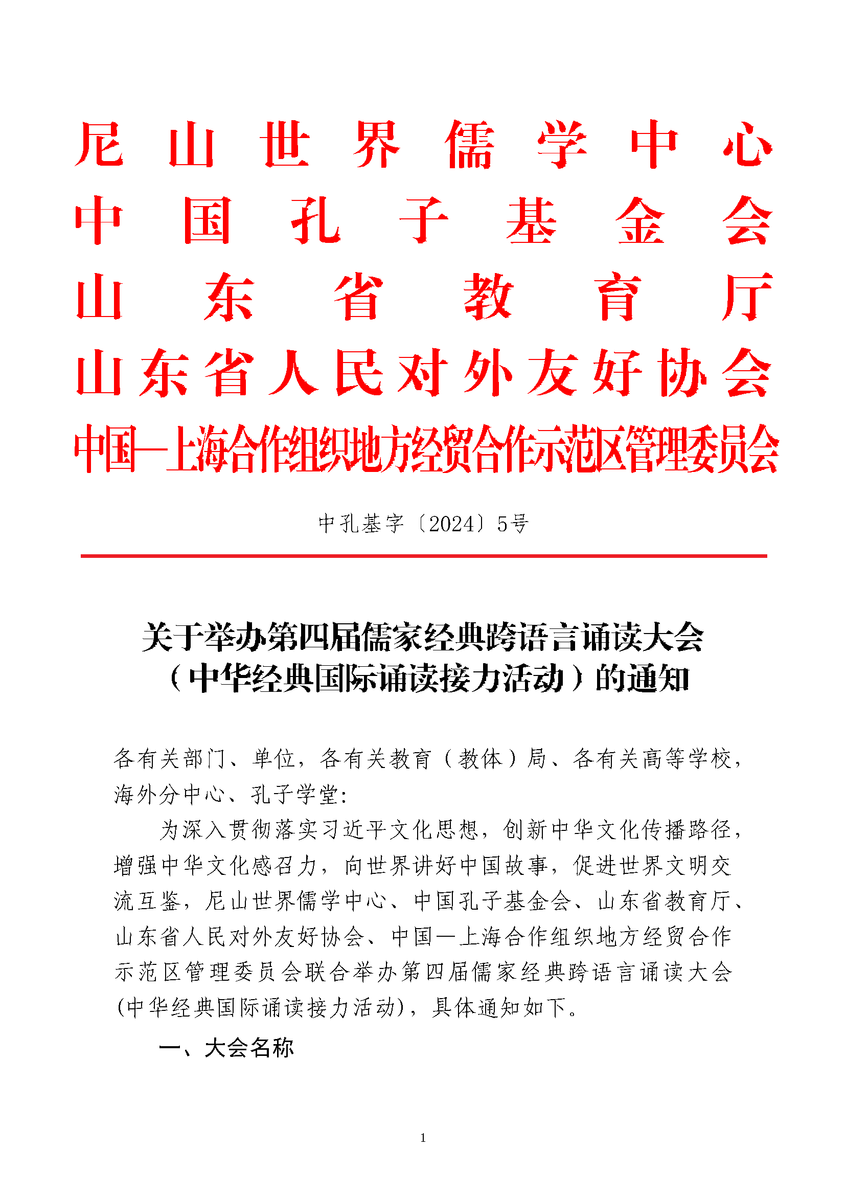 關于舉辦第四屆儒家經典跨語言誦讀大會(中華經典國際誦讀接力活動)的通知