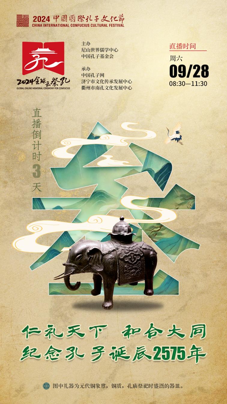 中華文明,源遠流長;祭孔盛典,傳承千載。值孔子誕辰2575年之際,由尼山世界儒學中心、中國孔子基金會主辦,中國孔子網、濟寧市文化傳承發展中心、衢州市南孔文化發展中心承辦的2024全球“云祭孔”網絡直播活動將于9月28日正式啟動。