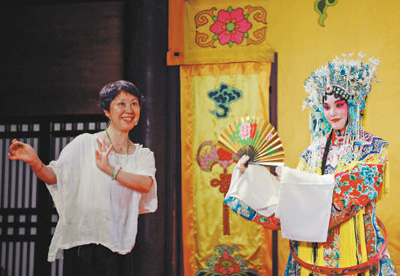 江蘇南通伶工學社內,外國學生身著戲服學習京劇。