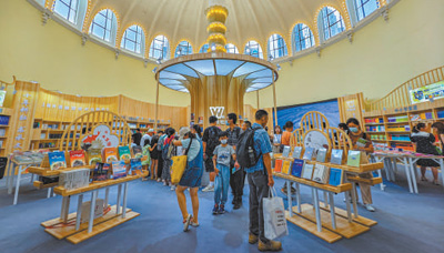 2024上海書展現場,讀者在上海外語教育出版社展臺選購書籍。