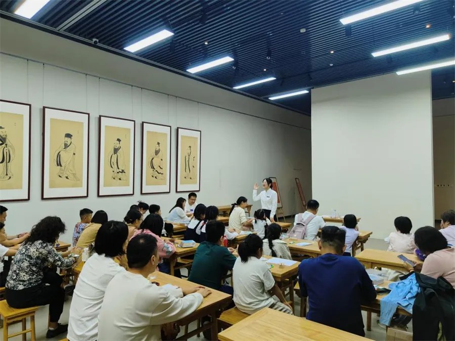 孔子博物館不斷擦亮“孔子課堂”核心社教品牌,依托豐富的館藏文物和陳列展覽,先后組織開展公益社教活動47場/次,服務觀眾965人。結合展覽、節慶文化、傳統非遺等主題,先后開展“翻花舞龍迎國慶”“詩經植物園”“妙手生花:毛線繡”“非遺麥稈畫:喜上眉梢”“趣味剪紙:蝴蝶耳墜”等公益社教課程。研學體驗中心(孔博書局)每日為觀眾提供非遺文化體驗活動,涵蓋雕版印刷、拓印等非遺技藝,活動現場人來人往,觀眾在動手中學習傳統文化,在學習中傳承傳統技藝。