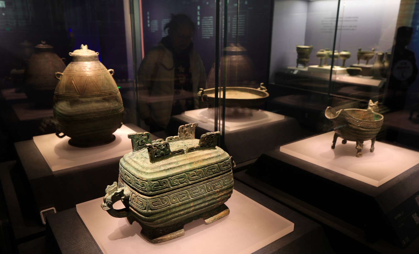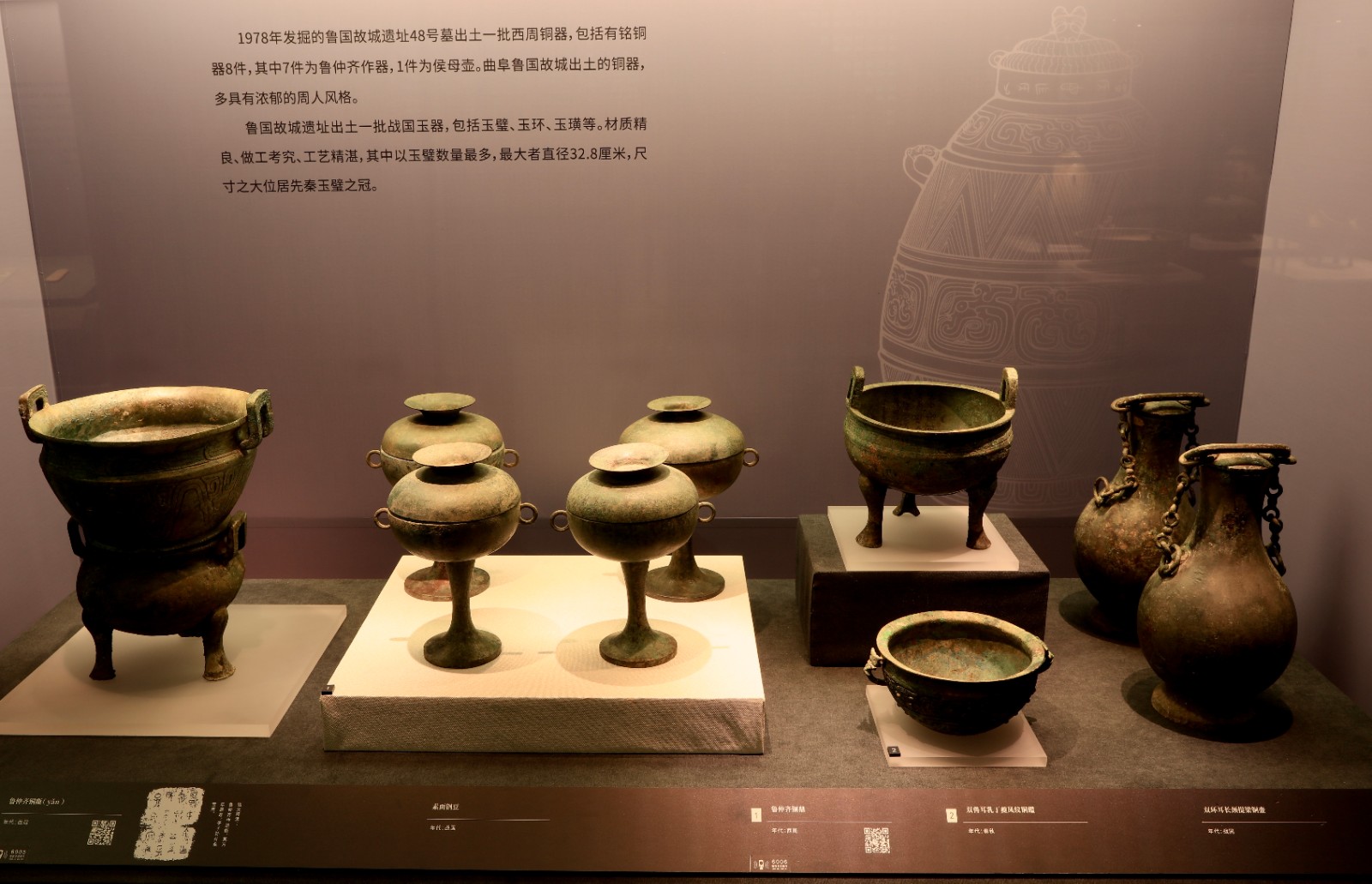 展出的一組魯國故城遺址出土的青銅器。