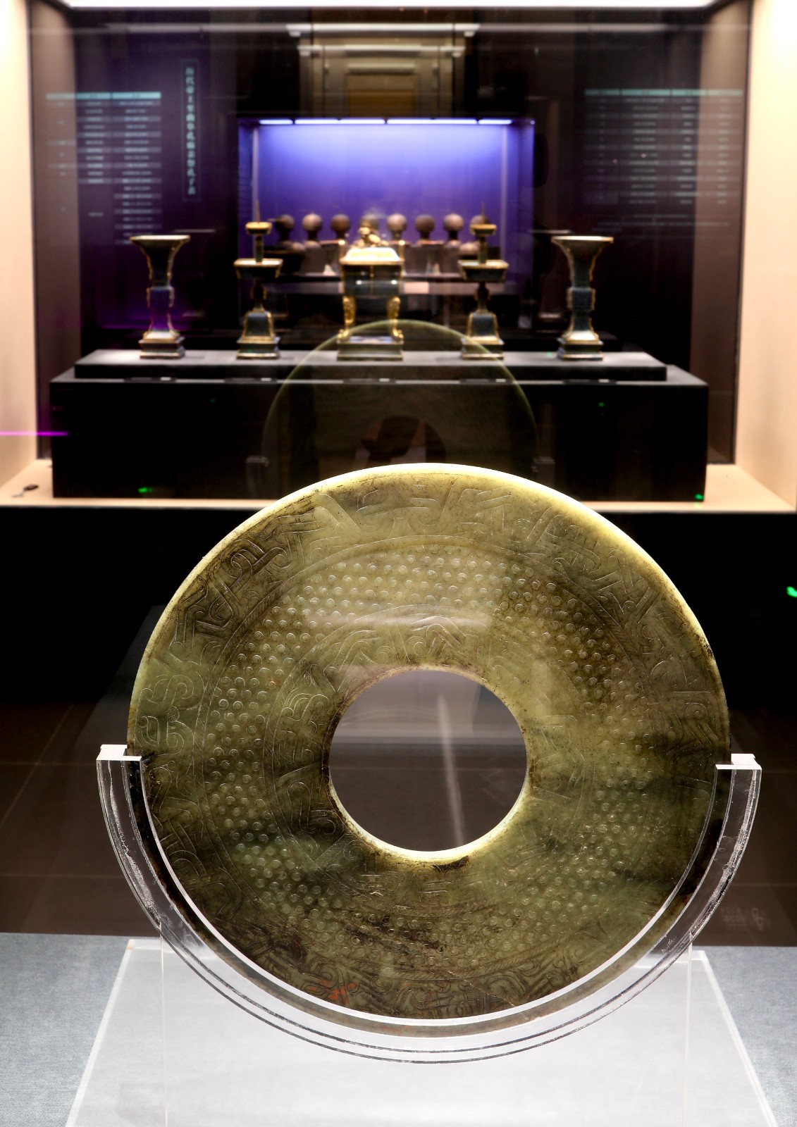 戰國夔龍谷紋玉璧展示。