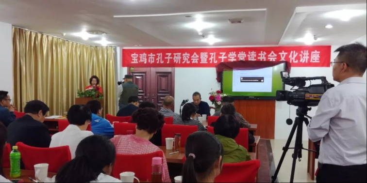 【陳寶霞】寶雞市孔子研究會孔子學堂常年開設傳統文化經典講座、書法講座及讀書會。學堂采取“每一季度設一個專題,每一個專家承接一個專題講座,輪流授課,統一組織”的方式,先后開辦了“孔子的仁德觀與治國理念”“孔子的治學觀初探”“周公制禮樂與儒家文化的發源探究”“寶雞燕伋尊師尚仁精神與為政之道”“寶雞石鼓文系列講座”“寶雞九成宮禮醴碑書法術解析”“寶雞青銅器的文化價值”“《詩經》與寶雞”“長征精神與民族振興”等專題講座。其中,由我主講的課程有《我讀<論語>悟家教》《燕伋精神與為政以徳》《從儒家思想看企業家的社會責任》《中華八德》等。