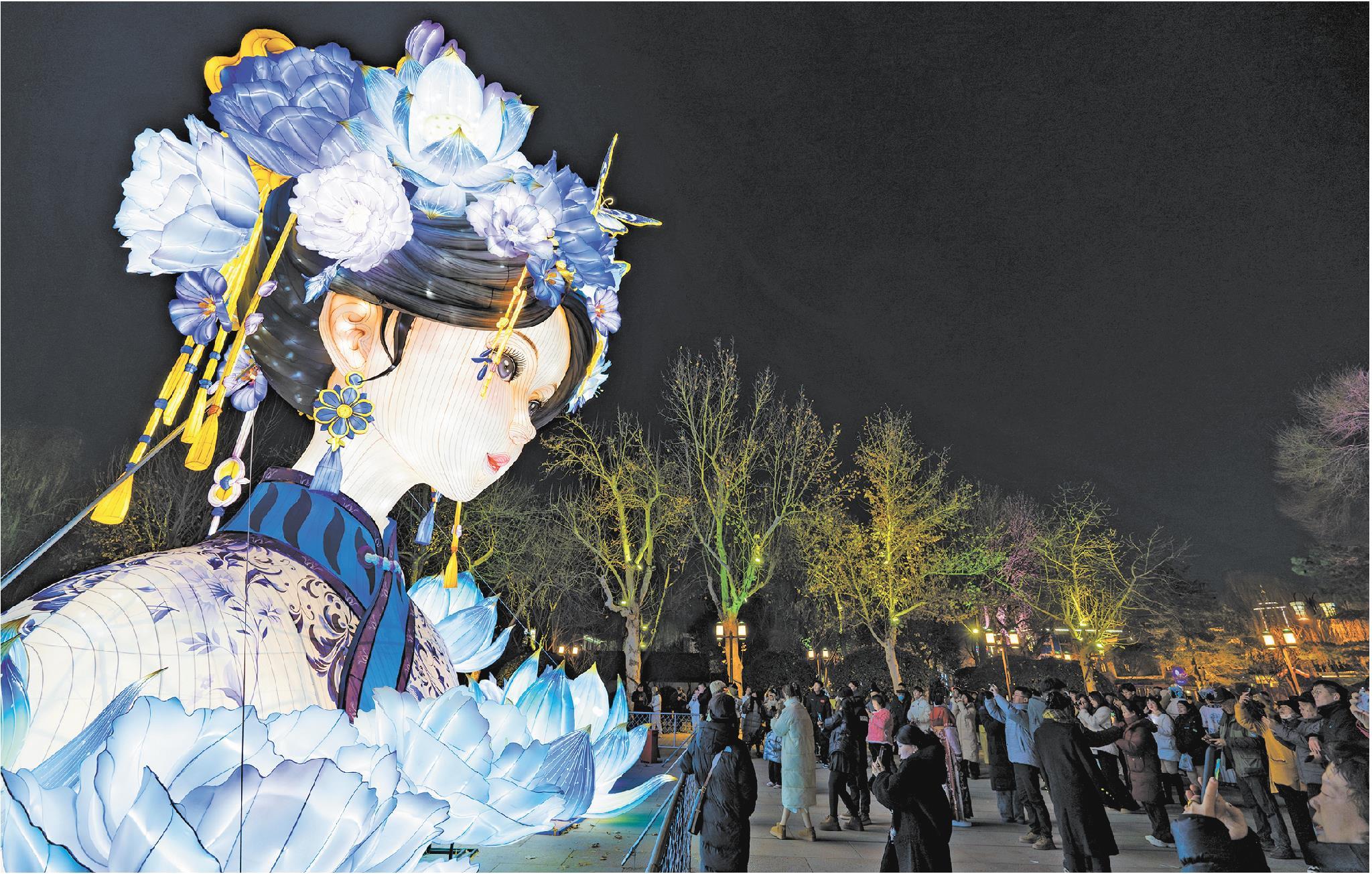 花燈前,和史圣男一樣做著同款妝造來打卡的“夏雨荷們”不在少數。元宵節,全國的花燈又“卷”了起來,春節前就已爆火網絡的“湖畔雨荷”,每天都有超萬人來一睹“芳容”。