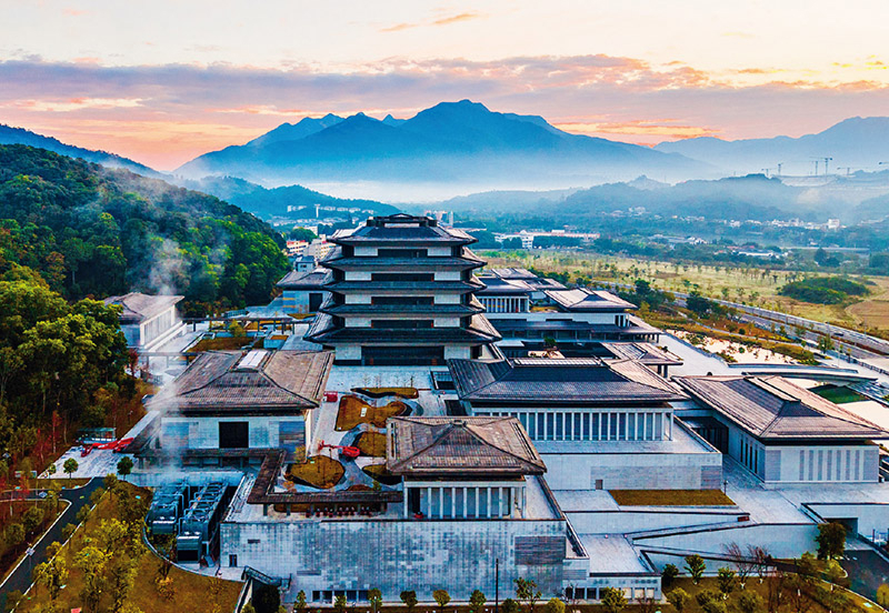 有著5000多年文明史的中國巍然屹立于世界東方,14億多人口在整體實現現代化的道路上闊步邁進,這是人類文明的巨大進步。圖為沐浴在晨曦中的中國國家版本館廣州分館(2024年12月3日攝,無人機照片)。 新華社記者 劉大偉/攝