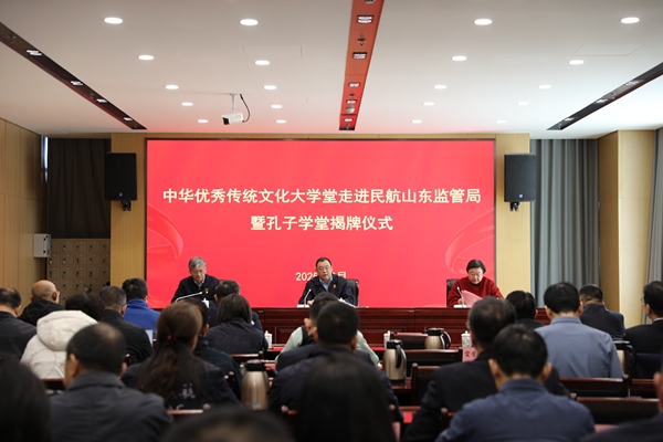 2月17日,2025年首期中華優秀傳統文化大學堂暨孔子學堂授牌活動在中國民用航空山東安全監督管理局舉行。民航山東監管局黨委書記、局長于蒼建,尼山世界儒學中心(中國孔子基金會秘書處)黨委委員、副秘書長周靜出席活動,民航山東監管局黨委副書記、紀委書記胡剛主持活動。