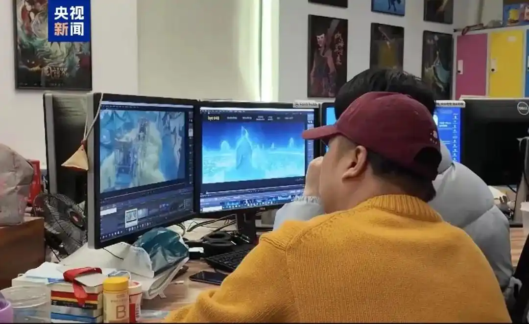 △《哪吒2》壯觀的特效背后,是全國138家動畫公司的合力托舉。圖為創作團隊正在確認畫面效果。